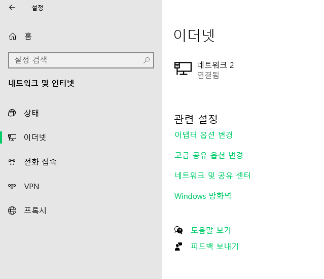 2. 네트워크 및 인터넷을 클릭한다.