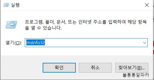 두 번째로 윈도 msinfo32로 확인하는 방법입니다.