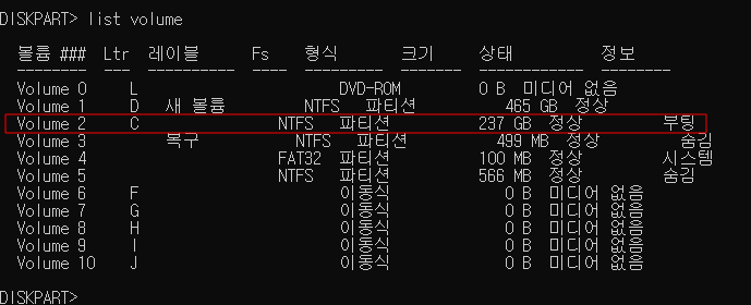 우선 윈도우10 설치 지원하는 USB나 CD가 필요하다.
